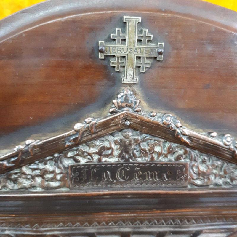 19 YY SONLARINA AİT . AHŞAP TABLA ÖLÇÜLERİ 22,5 x 20 cm , BAKIR ÜZERİNE GÜMÜŞ KAPLAMA . ARKA YÜZ PİRİNÇ AYAKLI . KAPLAMALAR ESKİLIİKTEN KISMEN AŞINMIŞ . DEFORMASYON VE HATA YOK . ANTİKA .