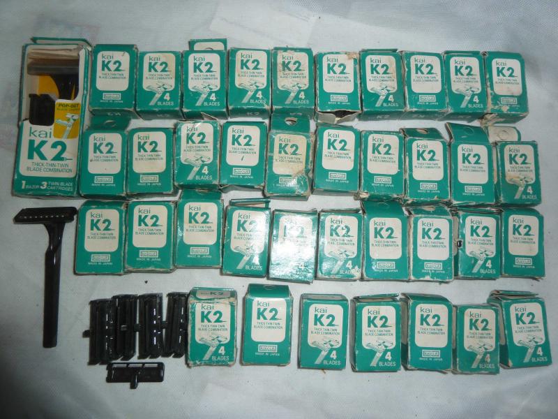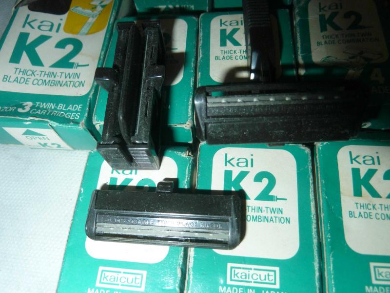 2 ADET JAPON MALI KAİ KA2 KARTUŞLU TRAŞ MAKİNESİ VE KUTULARINDA 150 ADET ÇİFT BIÇAKLI SABİT BAŞLIKLI KARTUŞ HER KUTUDA 4 ADET KARTUŞ VARDIR MAKİNENİN BİRİNİN KUTUSU YOK AMA HEPSİ SIFIR 1 KARTUŞA E NEZ 10 DEFA TRAŞ OLABİLİRSİNİZ ARAS KARGO İLE GÖNDERİLECEK
