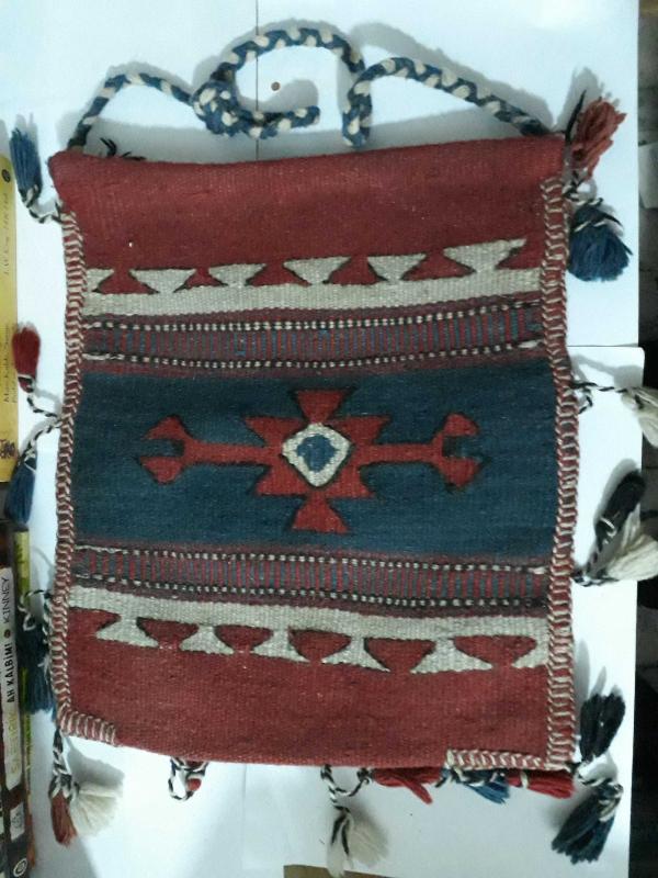 ANTİKA KEÇİ KILINDAN ASKILI ÇANTA KÖK BOYALI EL DOKUMADIR 2. ELDİR EBATLARI - 29 X 35 CM ÇOK İYİ DURUMDA