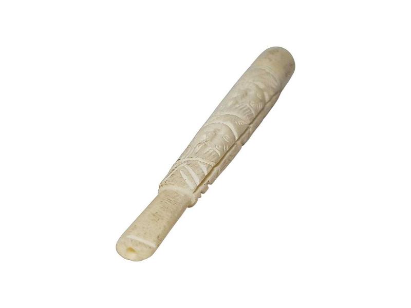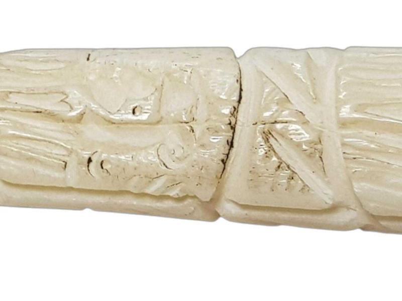 ÜZERİ KALEM VE KABARTMA İŞÇİLİKLİ KEMİK AĞIZLIK. UZUNLUK: 10,3 CM