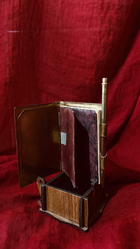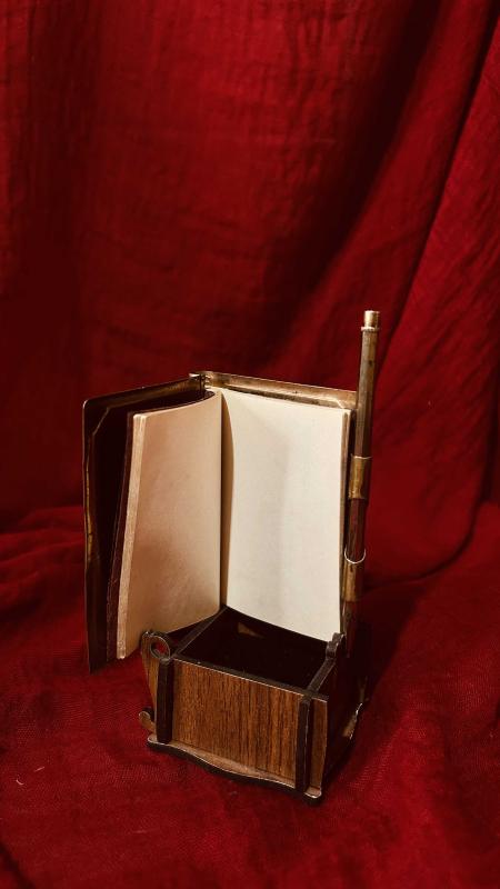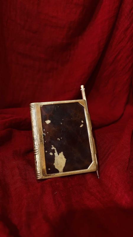 ANTİKA KOMPLE PİRİNÇ İŞLEMELİ NOT DEFTERİ ( KALEMİ ARIZALI TAMİR EDİLEBİLİR )