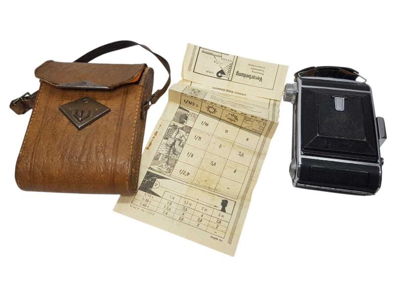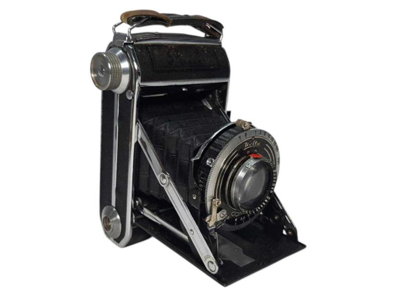 1930'LARDAN ORJİNAL DERİ KILIFINDA VE BELGESİYLE BİRLİKTE WELTA KÖRÜKLÜ FOTOĞRAF MAKİNESİ. KUTU EBAT: 15 X 10 X 4,5 CM