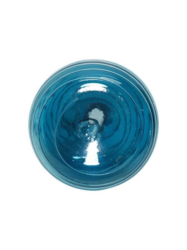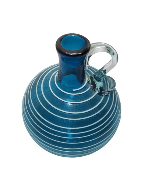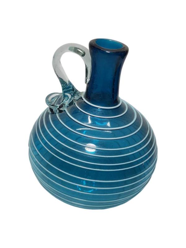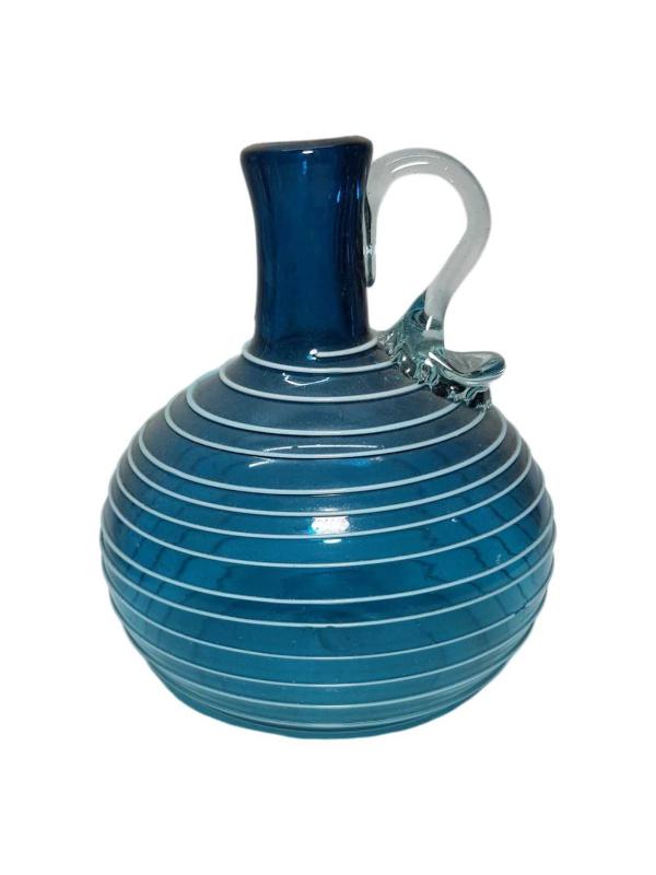 ÜZERİ HELEZONİK BEYAZ OPAL ÇİZGİLERLE KAPLI MAVİ RENKLİ MURANO KARAF 17 CM