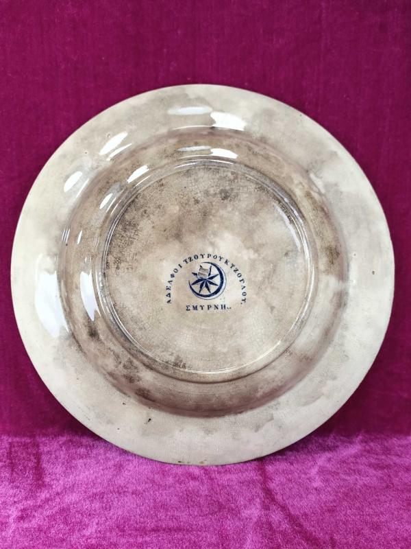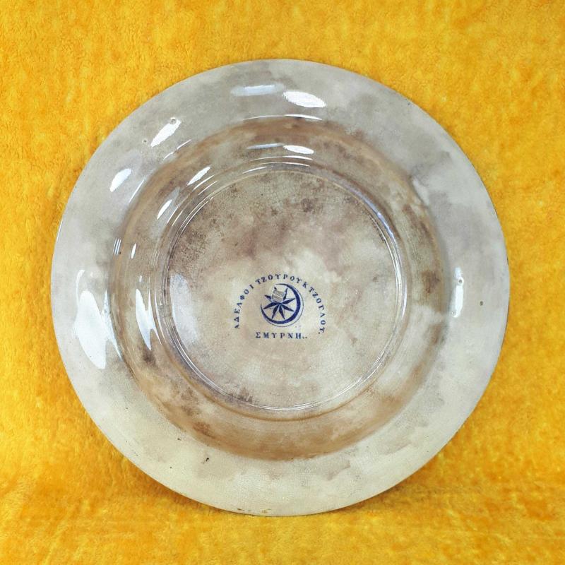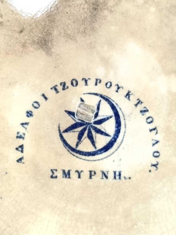 ANTİKA OSMANLI DÖNEMİ AYYILDIZ DAMGALI RUMCA İZMİR VE FİRMA İSMİ YAZILI MAVİ RENKLİ UZAKDOĞU MOTİFLİ KARAKALEM SERAMİK TABAK başlıklı antika/koleksiyon objesi Türkiye menşe’lidir. 1900-1919 arası dönemine aittir.