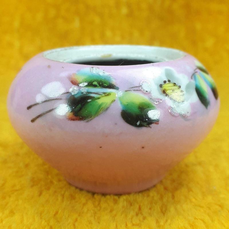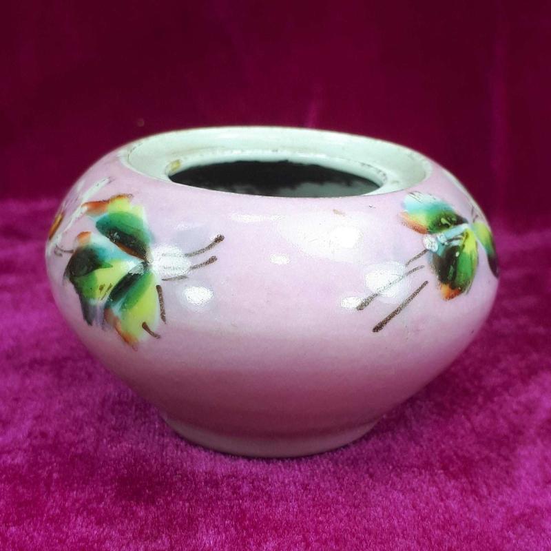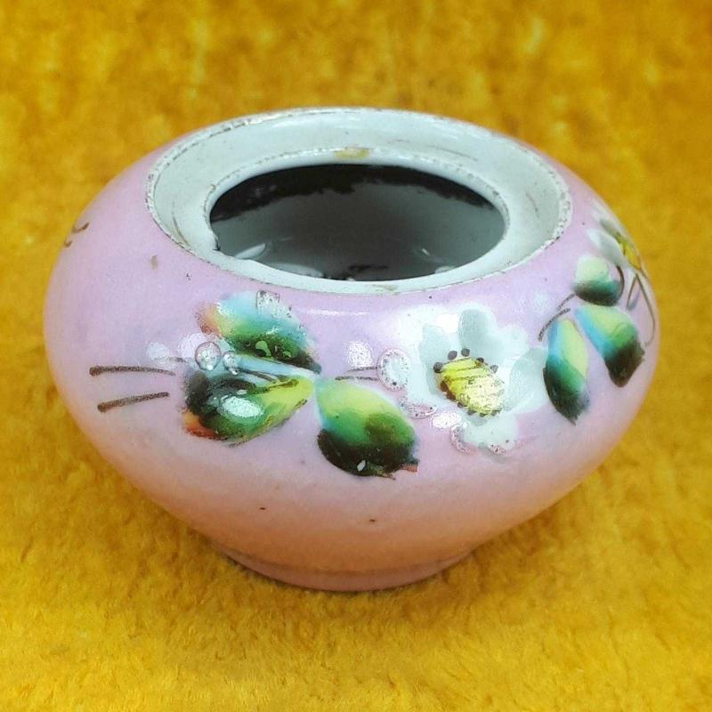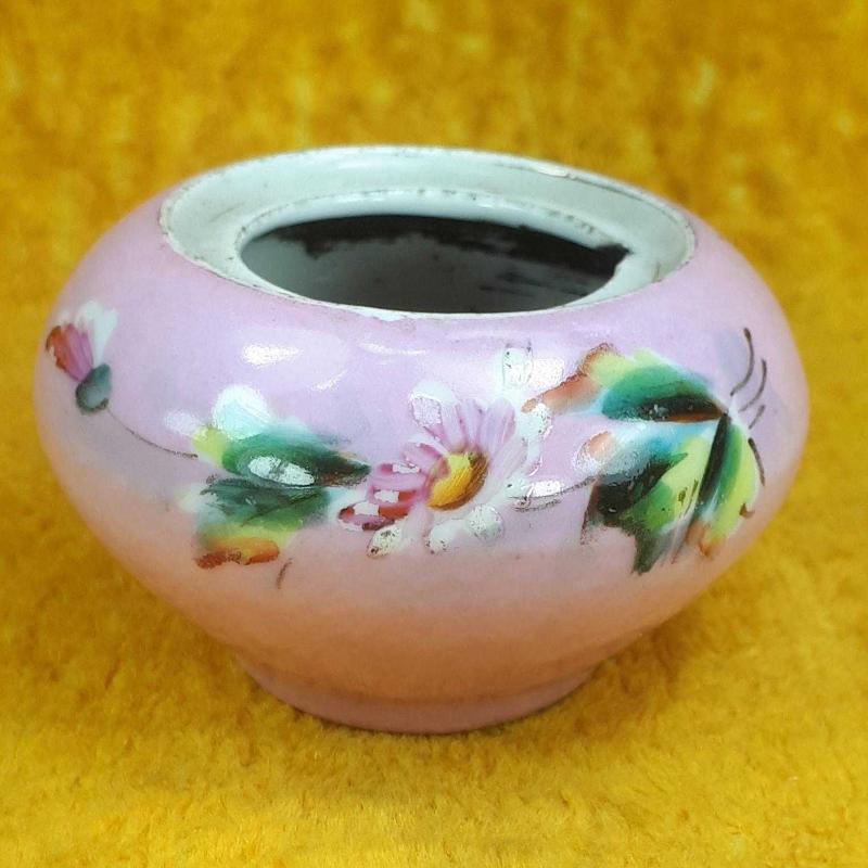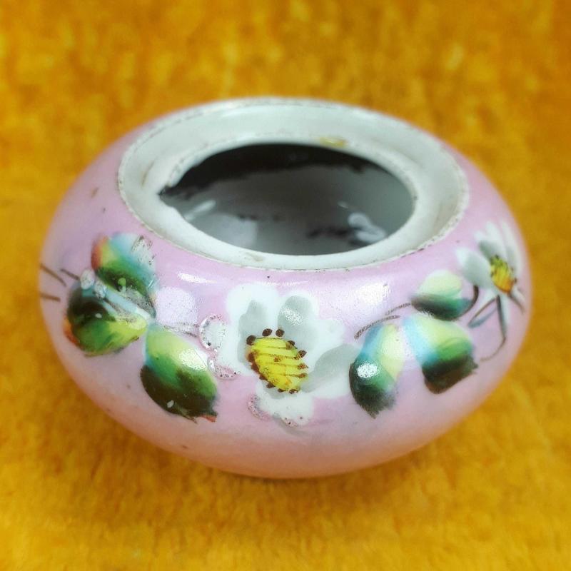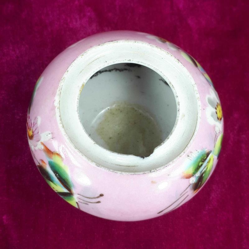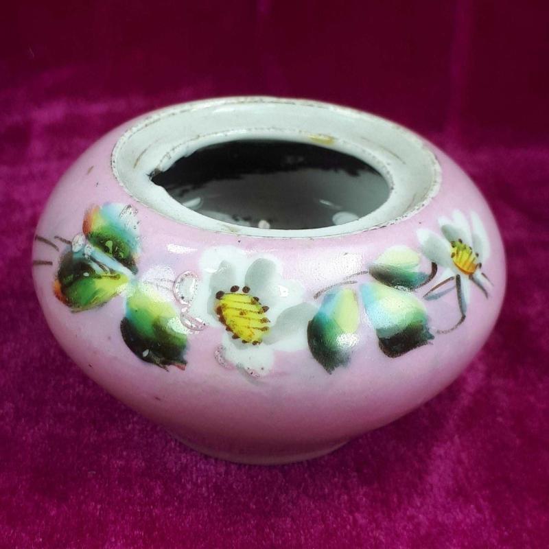 1900 LERDEN . TAHMİNEN VİYANA . YÜKSEKLİK 4,5 cm , ÇAP EN FAZLA 6,5 cm . KAPAK YOK , ÜST AĞIZ İÇ KENARINDA UFAK BİR ATIK VAR , GÖVDEDE KIRIK ÇATLAK YOK , EL BOYAMA ÇİÇEKLER DESENLİ . ANTİKA .
