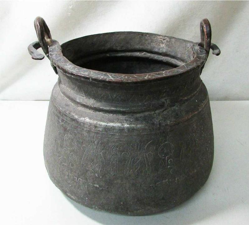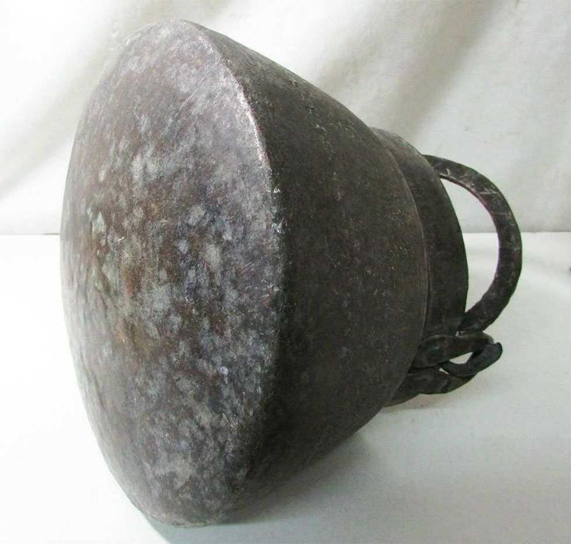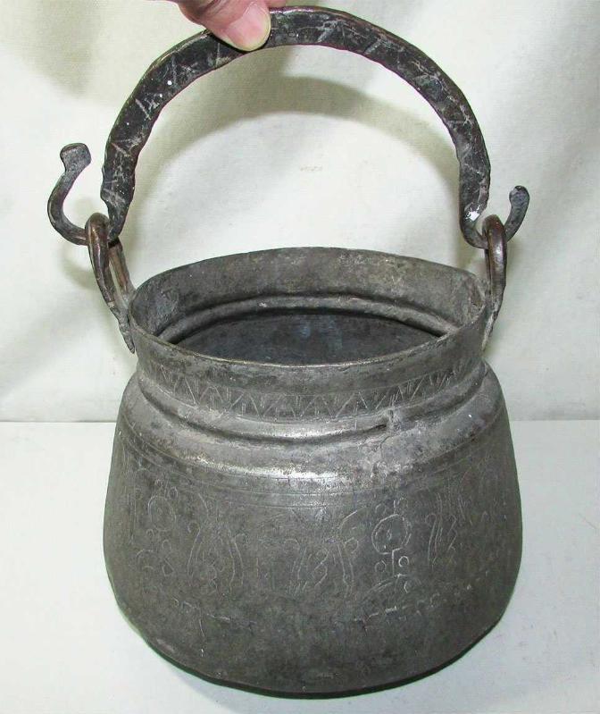 ANTİKA OSMANLI BAKIR DÖVME BAKRAÇ-HELKE HER TARAFI HARİKA İŞLEMELERLE BEZELİ İŞLEMELİ SAPI DEMİR DEĞİL,BRONZDUR KIRLANGIÇ KUYRUĞU GEÇME TABANLI MEVCUDU İLE SAĞLAM VE İYİ KONDÜSYONDA KENAR YÜKSEKLİĞİ 15cm,AĞIZ GENİŞLİĞİ 16cm TABAN GENİŞLİĞİ 23cm,SAPLI YÜKSEKLİĞİ 27cm Tarih Aralığı:1850 - 1899 Durum:Kullanılmış Kondisyon:Yüksek Menşei:Osmanlı