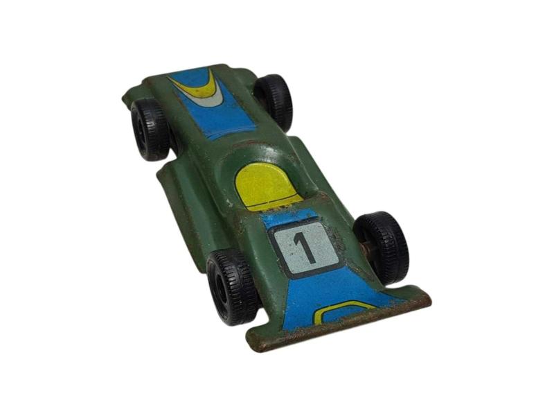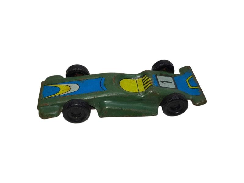 TENEKE ÜZERİ EL BOYAMA YARIŞ ARABASI BÜYÜK İHTİMALLE TÜRK YAPIMI (GÜREL OLABİLİR) 13 CM