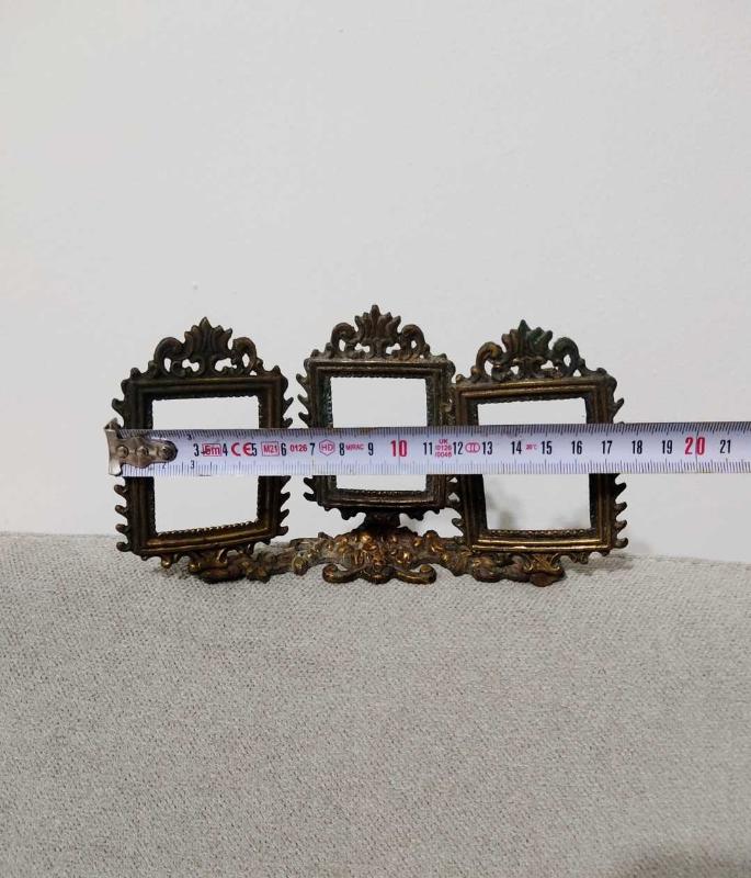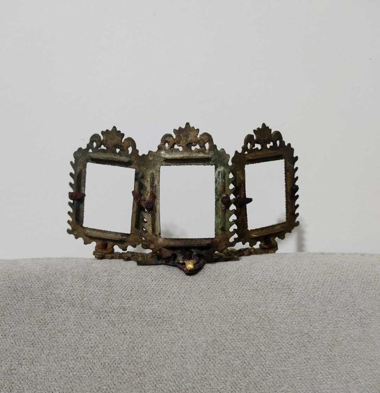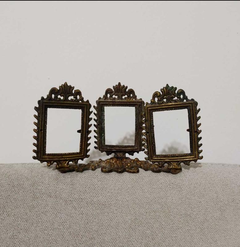 1940–1950’li yıllara tarihlenen, barok / rokoko tarzı süslemelere sahip antika üçlü vesikalık çerçeve satıştadır. Pirinç döküm yapısı ve ince işçiliğiyle, vintage ve antika dekor sevenler için oldukça özel bir parçadır. Zamanın doğal etkisiyle oluşmuş patinalar, çerçeveye özgün bir karakter ve estetik bir derinlik kazandırmaktadır. Üç gözlü yapısı sayesinde hem dekoratif hem de koleksiyon amaçlı kullanıma uygundur. 📏 Vesikalık ölçüdedir Masaüstü, konsol, vitrin veya koleksiyon sergileri için idealdir. Antika severler için değerli bir koleksiyon parçası veya şık bir hediye alternatifi. #antikaçerçeve #vintageçerçeve #üçlüçerçeve #pirinççerçeve #vesikalıkçerçeve #barokdekor #rokokodekor #vintagedekor #antikadekor #retroevdekoru #koleksiyonluk #nostaljikdekor #masaüstüdekor #antikaurun #vintagestyle