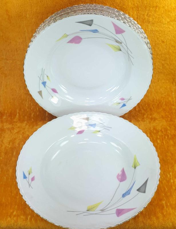 1950 LERDEN veya 1960 LARDAN . ÇAP 24,2 cm , KENARLARI ALTIN YALDIZ DEKORLU . BİR TANESİNDE KENARDA KÜÇÜK BİR SIÇRAK VAR . BUNUN HARİCİNDE KUSURSUZ .