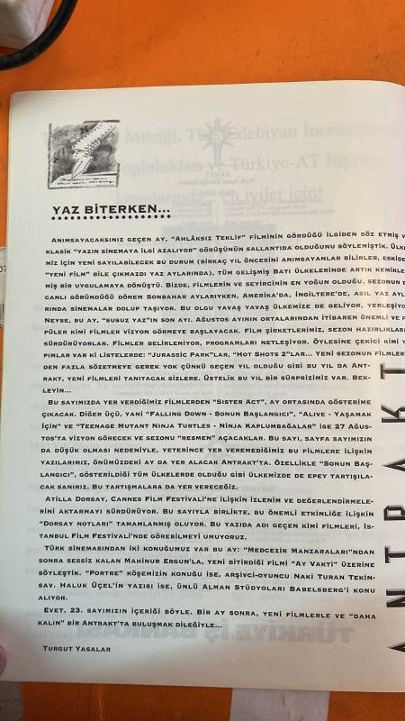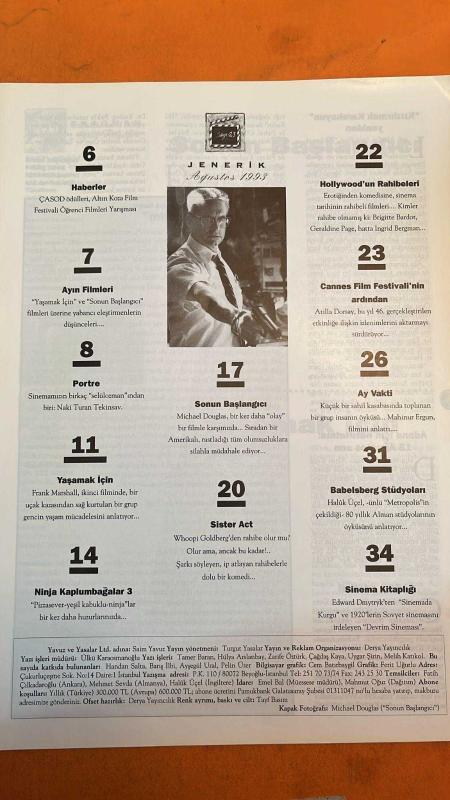 ANTRAKT AYLIK SİNEMA DERGİSİ - AĞUSTOS 1993 - YILMAZ GÜNEY – SİNAN ÇETİN – MAHİNUR ERGUN – NAKİ TURAN TEKİNSAV – ATİLLA DORSAY – HALUK ÜÇEL – FRANK MARSHALL – JOEL SCHUMACHER – MICHAEL DOUGLAS – ROBERT DUVALL – BARBARA HERSHEY – RACHEL TICOTIN – ETHAN HAWKE – VINCENT SPANO – JOHN PATRICK SHANLEY – EDWARD DMYTRYK – BRIGITTE BARDOT – GERALDINE PAGE – INGRID BERGMAN – MONIQUE NEUBOURG – ALAIN BOUZY – ÇAĞDAŞ KAYA - SONUN BAŞLANGICI (FALLING DOWN) – YAŞAMAK İÇİN (ALIVE) – NINJA KAPLUMBAĞALAR 3 – SISTER ACT – AY VAKTİ – AHLÂKSIZ TEKLİF – MEDCEZİR MANZARALARI – METROPOLIS – SİNAMADA KURGU – DEVRİM SİNEMASI - 34 SAYFA adlı eser Türkçe dilindedir.