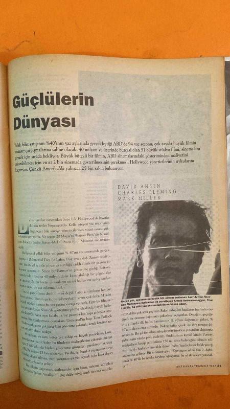 ANTRAKT AYLIK SİNEMA DERGİSİ - TEMMUZ 1994 - HALUK ÜNAL – OLIVER STONE – YVES MONTAND – JACK LEMMON – WALTER MATTHAU – PATRICE CHÉREAU – ISABELLE ADJANI – CATHERINE DENEUVE – ETHAN COEN – JOEL COEN – MIKE FIGGIS – JOHN WATERS – DEVRİM ALPÖGE – M. SÜHA ARIN – SEÇİL BÜKER – YALÇIN DEMİR – İBRAHİM H. KURT – SELAMI SÖZER – AHMET TOLUNGÜÇ – ATIF YILMAZ – NEZİHE ARAZ – NECAT BIRINCI – ORHAN DURU – MEMDUH EKŞİ – BİROL EMİL – GÜLTEKİN SAMANCI – SADIK KEMAL TURAL – FAHİR ARMAOĞLU – RONA AYBAY – ABDURRAHMAN ÇAYCI – REŞAT GENÇ – CEZMI KARTAY – UYGUR KOCABAŞOĞLU – AHMET MUMCU - AYLIK SİNEMA DERGİSİ – SİNEMA VE KÜLTÜR ENDÜSTRİSİ – HDTV VE SİNEMA TEKNOLOJİSİ – HAREKETLİ GÖRÜNTÜ TARİHİ – SİNEMA SALONLARININ YERİNİ DEĞİŞTİREN DİJİTAL YAYIN – KÜLTÜREL YANSIMALAR – TÜRKİYE’DE KÜLTÜR VE SİNEMA DEĞİŞİMİ – CANNES 1994 GÖZLEMLERİ – FESTİVALİN IKI YÜZÜ: ŞATAFAT VE MESAİ – JÜRİ DENEYİMLERİ – GATT ANLAŞMASI VE SİNEMA POLİTİKASI – AMERİKAN FİLMLERİNİN CANNES STRATEJİSİ – ULUSLARARASI FİLM FESTİV - 66 SAYFA adlı eser Türkçe dilindedir.