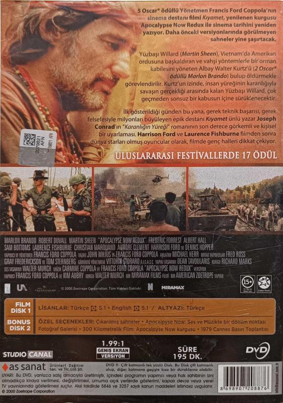 APOCALYPSE NOW REDUX KIYAMET 2 DİSK DVD FİLM ORJİNAL 2.EL DVD ( 9481, en son 4 ay önce güncellenmiştir.