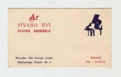 AR PİYANO EVİ STAVRO ANDRİOĞLU KARTVİZİTİ....