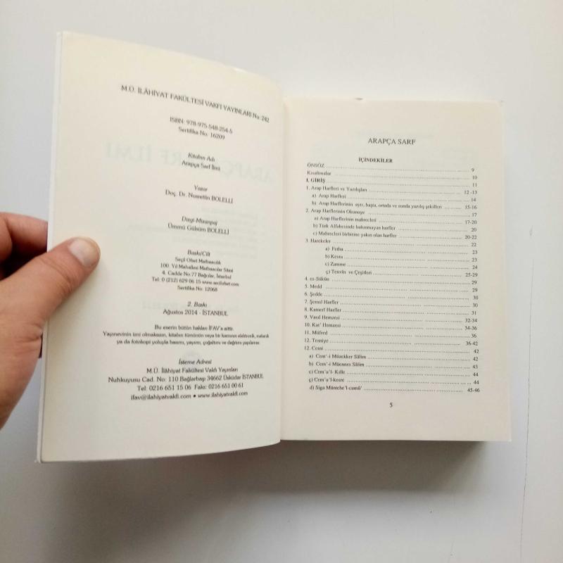 ARAPÇA SARF İLMİ (2.EL), DOÇ. DR. NUSRETTİN BOLELLİ tarafından kaleme alınmıştır. Kitap 2014 yılında İFAV YAYINCILIK tarafından [ İSTANBUL] 978-975-548-254-5 ISBN kodu ile yayınlanmıştır. Satışta olan kitap, yayınevinin 2. baskısıdır. 568 sayfadır. Sayfa bilgisi 2. HAMUR olarak belirtilmiştir. ARAPÇA SARF İLMİ (2.EL) adlı eser Türkçe dilindedir.
