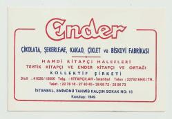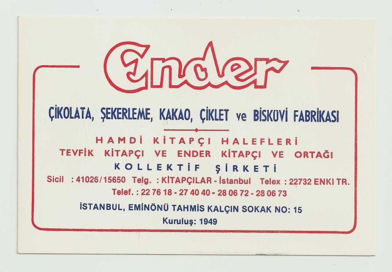 ARKA YÜZÜ İMZALI ENDER ÇİKOLATA,ŞEKERLEME,KAKAO VE BİSKÜVİ FABRİKASI TEBRİK KARTI..., en son 6 ay önce güncellenmiştir.