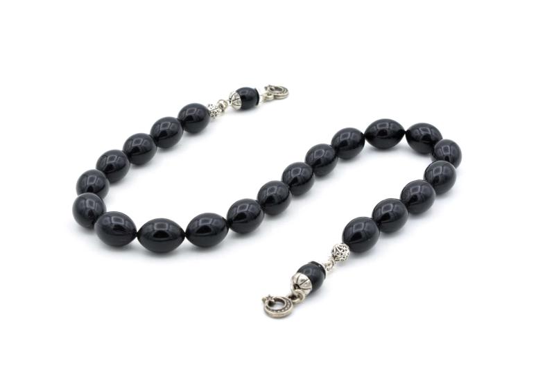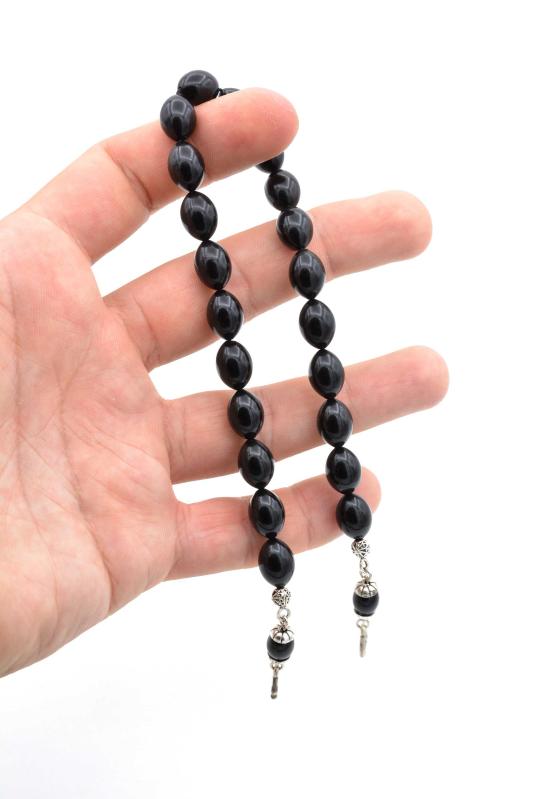 Renk: Siyah Kategori: Tesbih HAKİKİ ARPA KESİM TOZ PRES KEHRİBAR ZAZA TESBİH Metal aksam gümüş kaplamadır kesinlikle kararma yapmaz TESBİHİMİZİN BOYUTLARI TANE BOYUTU: 9*13 MM TOPLAM BOY: 33 CM