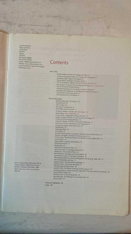 ART, NEW BOOKS AND HİGHLİTS DERGİSİ - SPRING 2012 - BARBARA RAE - ARCHIE BRENNAN - PRUNELLA CLOUGH - FRANCIS BACON - KURT JACKSON - RICHARD WOODS - JAMES TOWER - F.E. MCWILLIAM - BARBARA HEPWORTH - EDWARD BURRA - JOHN CRAXTON - JOHN BYRNE - PETER BLAKE - W. BARNS-GRAHAM - SANDRA BLOW - THOMAS HOUSEAGO - TANIA KOVATS - ALESSANDRO RAHO - CLIVE HEAD - LEONORA CARRINGTON - REMEDIOS VARO - KATI HORNA - F.C.B. CADELL - IVON HITCHENS - MARY FEDDEN - WINIFRED NICHOLSON - SHEILA FELL - TERRY FROST - ALBERT IRVIN - BEN NICHOLSON - CYRIL POWER - CLAUDE LORRAIN - JOHN RUSKIN - HENRY MOORE - ANTHONY CARO - ALAN REYNOLDS - ADRIAN HEATH - BRITISH AVIATION POSTERS - LONDON UNDERGROUND MAPS - REGIONS UNMAPPED - PAINTING IN A GODLESS WORLD - THE ART OF MODERN TAPESTRY - A NEW GENRE OF LANDSCAPE PAINTING - CHINESE ANTIQUITIES - CORPORATE ART COLLECTIONS - THE CERAMIC ART - THE SCULPTURE - THE PLASTERS - ART AND LIFE - ONE MAN SHOW - A STUDIO LIFE - A BIOGRAPHY OF PLACE AND T - TAM TAKIM EKSİKSİZ 28 SAYFA adlı eser İngilizce dilindedir.