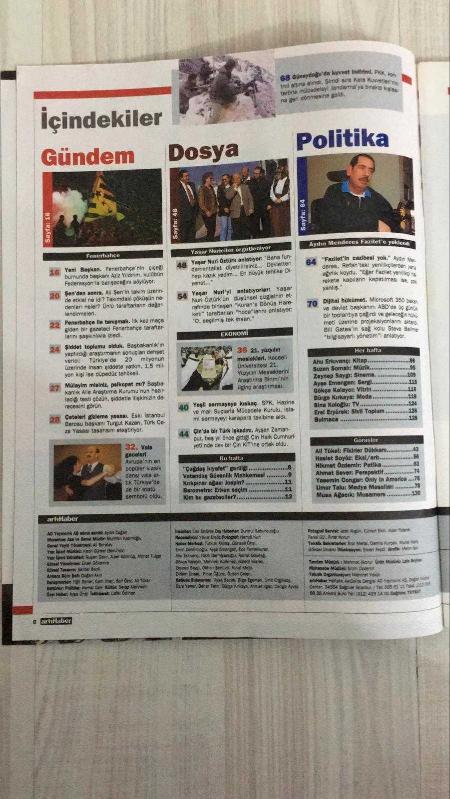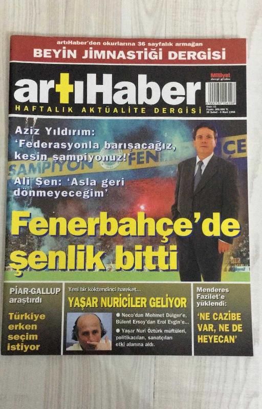 ARTIHABER HAFTALIK AKTÜALİTE DERGİSİ – SAYI 11 – 28 ŞUBAT–6 MART 1998 – 114 SAYFA – ARTIHABER’DEN OKURLARINA 36 SAYFALIK ARMAĞAN: BEYİN JİMNASTİĞİ DERGİSİ – FENERBAHÇE’DE ŞENLİK BİTTİ: AZİZ YILDIRIM “FEDERASYONLA BARIŞACAĞIZ, KESİN ŞAMPİYONUZ” – ALİ ŞEN: “ASLA GERİ DÖNMEYECEĞİM” – YAŞAR NURİCİLER GELİYOR: MÜFTÜLERDEN SANATÇILARA KADAR GENİŞ ETKİ ALANI – YAŞAR NURİ ÖZTÜRK: “BANA FUNDAMENTALİST DİYEBİLİRSİNİZ, EN BÜYÜK TEHLİKE DİYANET” – AYDIN MENDERES FAZİLET’E YÜKLENDİ: “CAZİBE YOK” – GÜNEYDOĞU’DA KUVVET İNDİRİMİ – TÜRKİYE’DE ŞİDDET TOPLUMU: 20 MİLYON KİŞİ ŞİDDETE YATKIN – MÜLAYİM MİSİNİZ, PSİKOPAT MI? BAŞBAKANLIK TESTİ – ÇETELERİ GİZLEME YASASI ELEŞTİRİSİ – 21. YÜZYILIN MESLEKLERİ – YEŞİL SERMAYEYE KISKAÇ – ÇİN’DE BİR TÜRK İŞKADINI: AYŞEN ZAMANPUR – DİJİTAL HÜKÜMET: MICROSOFT’TAN GELECEK PROJEKSİYONU – CİNSEL EĞİTİM OKULU – KKTC’DE KUMARHANE AÇILIMI – VATANDAŞ GÜVENLİK MAHKEMESİ – KIRKPINAR AĞASI JOSPIN – ERKEN SEÇİM BAROMETRESİ – KİM BU GAZETECİLER? – MÜMTAZ SOYSAL PORTRESİ – KOSOVA adlı eser, Kitap > Süreli Yayınlar > Dergiler > Siyaset kategorisinde İkinci El olarak satıştadır.
