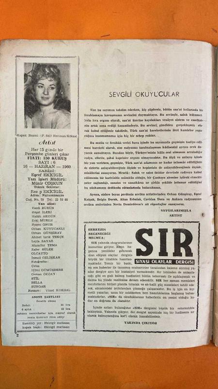 ARTİST SİNEMA, FİLM, TİYATRO, SES, SOSYETE MAGAZİN MECMUASI DERGİSİ - 16 HAZİRAN 1960 SAYI: 6 NERİMAN KÖKSAL - MÜNİR COŞKUN - RECEP EKİCİGİL - VECDİ BURUN - REŞAT İLERİ - HALUK AKGÜN - ZEKİ MÜREN - NECMİ ONUR - ORHAN KUYUCAKLI - ORHAN GÜNŞIRAY - AHMET TARIK TEKÇE - LEYLA SAYAR - MUZAFFER TEMA - ZAFER SÜLEK - OLCAYTO - İSMAİL GELİŞKAN - ÇETİN - HİLMİ GÜMÜŞDERE - OSMAN ÖZCAN - BELLA - SUNGAR - YÜCEL KÖKSAL - NEŞ'E YULAÇ - NEDRET GÜVENÇ - EFKAN EFEKAN - GÜLSEVİL - ATIF YILMAZ - MUALA KAYNAK - ULLA DARNI - ÇOLPAN ILHAN - BELGİN DORUK - LEYLA SAYAR - SÜREYYA DURU - BELGİN DORUK - FARUK KENÇ - MÜNİR COŞKUN - RECEP EKİCİGİL - VEDAT KARAOKÇU - KENAN ERSOY - ŞÜKRAN ÖZER - SAFİYE AYLA - SADRİ ALIŞIK - GÜLRİZ SURURİ - RÜÇHAN ÇAMAY - ÇOLPAN ILHAN - NEVIN DEMIRDÖVEN - EŞREF KOLÇAK - ALTAN ERBULAK - CAVIDAN DORA - ZEKİ MÜREN - MUZAFFER TEMA - LEYLA SAYAR - ORHAN GÜNŞIRAY - MUALA KAYNAK - ULLA DARNI - SÜREYYA DURU - VECDI BURUN - REŞAT İLERİ - HALUK AKGÜN - NECMI ONUR - ORHAN K - TAM TAKIM - 40 SAYFA, EŞREF EKİCİGİL tarafından kaleme alınmıştır. ARTİST SİNEMA, FİLM, TİYATRO, SES, SOSYETE MAGAZİN MECMUASI DERGİSİ - 16 HAZİRAN 1960 SAYI: 6 NERİMAN KÖKSAL - MÜNİR COŞKUN - RECEP EKİCİGİL - VECDİ BURUN - REŞAT İLERİ - HALUK AKGÜN - ZEKİ MÜREN - NECMİ ONUR - ORHAN KUYUCAKLI - ORHAN GÜNŞIRAY - AHMET TARIK TEKÇE - LEYLA SAYAR - MUZAFFER TEMA - ZAFER SÜLEK - OLCAYTO - İSMAİL GELİŞKAN - ÇETİN - HİLMİ GÜMÜŞDERE - OSMAN ÖZCAN - BELLA - SUNGAR - YÜCEL KÖKSAL - NEŞ'E YULAÇ - NEDRET GÜVENÇ - EFKAN EFEKAN - GÜLSEVİL - ATIF YILMAZ - MUALA KAYNAK - ULLA DARNI - ÇOLPAN ILHAN - BELGİN DORUK - LEYLA SAYAR - SÜREYYA DURU - BELGİN DORUK - FARUK KENÇ - MÜNİR COŞKUN - RECEP EKİCİGİL - VEDAT KARAOKÇU - KENAN ERSOY - ŞÜKRAN ÖZER - SAFİYE AYLA - SADRİ ALIŞIK - GÜLRİZ SURURİ - RÜÇHAN ÇAMAY - ÇOLPAN ILHAN - NEVIN DEMIRDÖVEN - EŞREF KOLÇAK - ALTAN ERBULAK - CAVIDAN DORA - ZEKİ MÜREN - MUZAFFER TEMA - LEYLA SAYAR - ORHAN GÜNŞIRAY - MUALA KAYNAK - ULLA DARNI - SÜREYYA DURU - VECDI BURUN - REŞAT İLERİ - HALUK AKGÜN - NECMI ONUR - ORHAN K - TAM TAKIM - 40 SAYFA adlı eser Türkçe dilindedir.