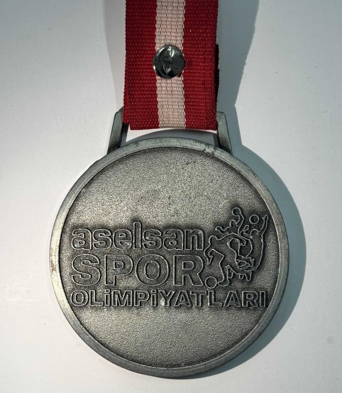 ASELSAN tarafından düzenlenen Spor Olimpiyatları organizasyonuna ait orijinal hatıra madalyasıdır. Kurumsal spor etkinliklerinde katılım veya derece ödülü olarak verilen bu madalya, Türkiye’nin köklü savunma sanayi kuruluşlarından ASELSAN’a ait olması sebebiyle koleksiyon değeri taşımaktadır. Madalyanın ön yüzünde “aselsan Spor Olimpiyatları” yazısı ve spor figürleri yer almakta olup kırmızı-beyaz orijinal kurdelesi üzerindedir. Arka yüzü boş bırakılmış olup organizasyonlarda sporcu adı veya derece yazılması amacıyla tasarlanmıştır. Koleksiyonluk, dekoratif ve kurumsal hatıra objesi olarak değerlendirilebilir. Fotoğraflardaki ürün gönderilecektir. Basım Yılı: Belirtilmemiş (1990’lar–2000’ler dönem) Tema: Spor / Kurumsal Organizasyon