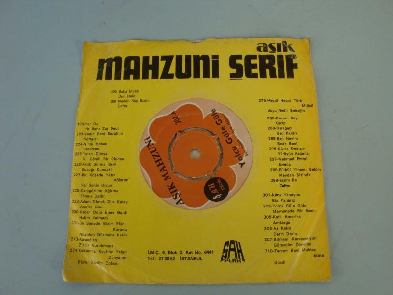 AŞIK MAHSUNİ ŞERİF " Yolcu Güle Güle - Meyhanede Bir Emmi " 45 RPM ( ŞAH PLAK ) Orjinal Kapak : 8 - Plak : 9 Kapak ÇOK TEMİZ , Plak ÇOK ÇOK TEMİZ durumda ..