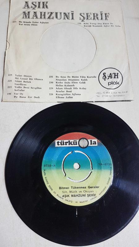 AŞIK MAHZUNİ ŞERİF DOST UYAN BİTMEZ TÜKENMEZ GECELER 45 LİK PLAK KAPAK 8 FARKLI PLAK 7.50