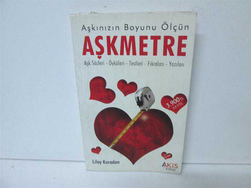 AŞKINIZIN BOYUNU ÖLÇÜN "AŞKMETRE" (AŞK SÖZLERİ - ÖYKÜLERİ - TESTLERİ - MESAJLARI - YAZILARI ) 2.EL, LİLAY KORADAN tarafından kaleme alınmıştır. Eser ÖZLEM KOCUKELİ editörlüğünde hazırlanmıştır. Kitap 2004 yılında AKİS KİTAP tarafından yayınlanmıştır. 157 sayfadır. AŞKINIZIN BOYUNU ÖLÇÜN "AŞKMETRE" (AŞK SÖZLERİ - ÖYKÜLERİ - TESTLERİ - MESAJLARI - YAZILARI ) 2.EL adlı eser Türkçe dilindedir.