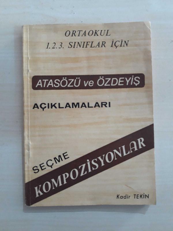 ATASÖZÜ VE ÖZDEYİŞ KADİR TEKİN ORTA OKUL 1. 2. 3. SINIFLAR İÇİN SEÇME KOMPOZİSYONLAR ÖĞRETMEN KİTAPEVİ 1976 112 SAYFA İKİNCİ EL İÇİNDEKİLER KISMINI ÖNCEKİ SAHİBİ KENDİSİ YAZIP KİTAPA YAPIŞTIRMIŞTIR ÜCRETSİZ KARGO