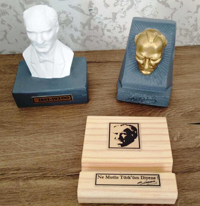 ATATÜRK Biblosu (2 Adet) ve Telefonluk (1 Adet) Resimdeki Ürün Gönderilecektir (Taş Tozundan İmal Edilmiştir), en son 7 ay önce güncellenmiştir.