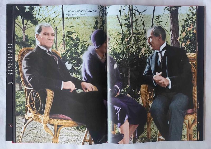 Atatürk'ün çok sayıda renkli fotoğrafından oluşan kuşe kağıda kaliteli baskı. Yayıncısının orijinal şömizli pandizot cildinde ve mahfazasında.