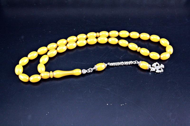 ATEŞ KEHRİBARI GÜMÜŞ PÜSKÜLLÜ TESBİH ORJİNAL SIFIR (ISIMSIZ RAF başlıklı antika/koleksiyon objesinin menşei belirtilmemiştir. Objenin ait olduğu dönem bilinmeketedir.