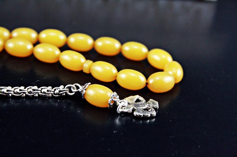 ATEŞ KEHRİBARI GÜMÜŞ PÜSKÜLLÜ TESBİH ORJİNAL SIFIR (ISIMSIZ RAF, 2 yıl önce kitantik’te satışa sunulmuştur.