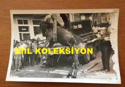ATLARLA İLGİLİ ORİJİNAL BİR FOTOĞRAF - 18 x 12 cm EBADINDA - ZAYIF DÜŞMÜŞ YARALI BİR AT VİNÇLE YERDEN KALDIRILIRKEN OLAYI İZLEYEN HALK OLACAKLARI MERAKLI GÖZLERLE TAKİP EDİYOR.(Sucuk bekleyen müşteriler), en son 9 ay önce güncellenmiştir.