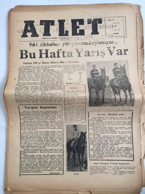 ATLET - Haftalık Atçılık ve Bitaraf Spor Dergisi Yıl: 17 Sayı: 737, 7 Mart 1961 adlı eser, Kitap > Süreli Yayınlar > Dergiler > Spor kategorisinde İkinci El olarak satıştadır.