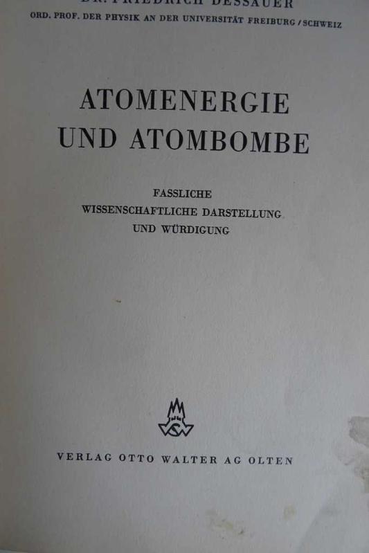 ATOMENERGIE UND ATOMBOMBE, FRIEDRICH DESSAUER tarafından kaleme alınmıştır. Kitap 1945 yılında VERLAG OTTO WALTER AG OLTEN tarafından yayınlanmıştır. ATOMENERGIE UND ATOMBOMBE adlı eser Almanca dilindedir.