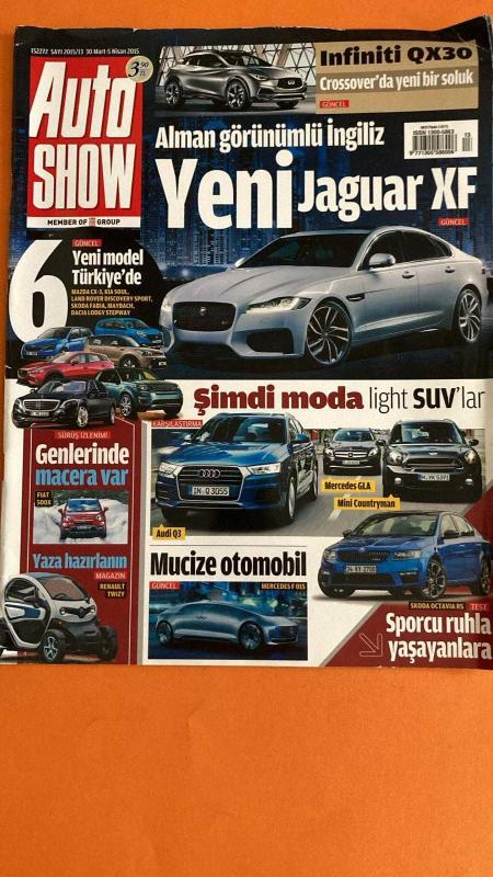 AUTOSHOW DERGİSİ - 30 MART – 5 NİSAN 2015 JAGUAR – INFINITI – MAZDA – KIA – LAND ROVER – SKODA – MAYBACH – DACIA – FIAT – MERCEDES – RENAULT – AUDI – MINI STEFAN VOSWINKEL – HIRANT KASAPOĞLU – MURAT TOSUN – OKAN ALTAN – VOLKAN IŞIK – İLKAY ERSOY GÜNCEL MODELLER – JAGUAR XF YENİ NESİL – INFINITI QX30 CROSSOVER – MAZDA CX-3 – KIA SOUL – LAND ROVER DISCOVERY SPORT – SKODA FABIA – DACIA LODGY STEPWAY – FIAT 500X TEST SÜRÜŞÜ – JAGUAR XF İZLENİMLERİ – MACERACI KARAKTER – AZALTILMIŞ TÜKETİM – MODERN PLATFORM – İÇ MEKAN YÜKSELİŞİ – UYGULAMA ENTEGRASYONU MERCEDES-MAYBACH S SERİSİ – V8 & V12 MOTOR SEÇENEKLERİ – BURMESTER 3D SES SİSTEMİ – ARKA KOLTUK ÖNCELİKLİ LÜKS – 1 MİLYON TL ÜZERİ FİYAT – DÜNYANIN EN SESSİZ SEDANI KULLANILMIŞ OTOMOBİL TESTİ – PORSCHE CAYMAN – AUDI A5 COUPE SKODA OCTAVIA RS – SPORTİF SÜRÜŞ – AİLE UYUMLULUĞU – RALLİ TECRÜBESİ – DİREKSİYON VE SÜSPANSİYON ANALİZİ KARŞILAŞTIRMA – MERCEDES GLA VS MINI COUNTRYMAN VS AUDI Q3 – LIGHT SUV FARKLARI – 4X2 VE MANUEL ŞANZIMA - 108 SAYFA adlı eser Türkçe dilindedir.