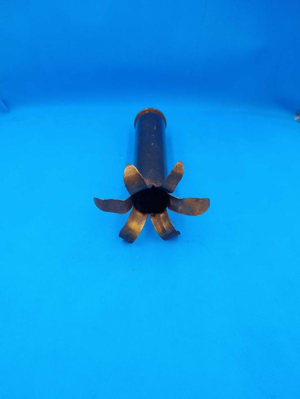 AVRUPA DENİZ KUVVETLERİ 55 MM HAVAN TOPU MERMİSİNDEN YAPILMA BRONZ VAZO başlıklı antika/koleksiyon objesi Avrupa menşe’lidir. 1950-1999 arası dönemine aittir.