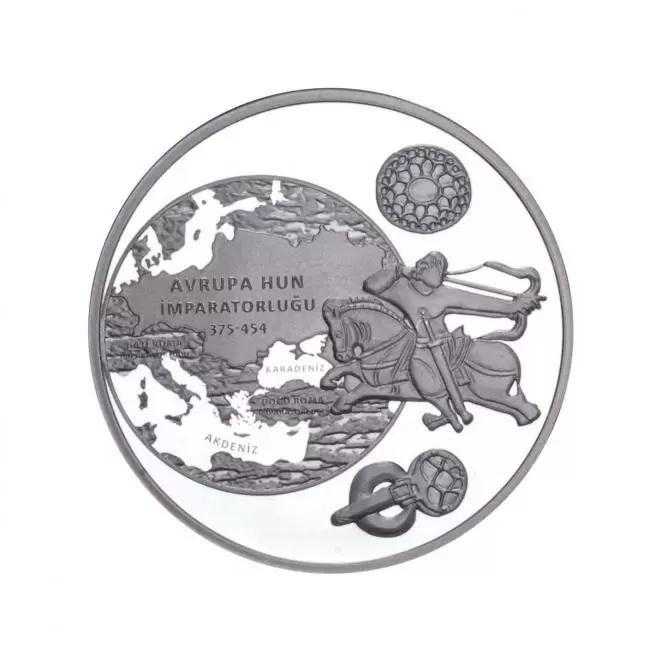 Hatıra Para Adı AVRUPA HUN İMPARATORLUĞU – TÜRK DEVLETLERİ SERİSİ NO:3 Nominal Değeri 20 Türk Lirası / TRY Metal 925 Gümüş / Ag Çap 38,61 mm Ağırlık 31,10± %1 gram / g Baskı Özelliği Mat Parlak /Proof Kenar Tırtıllı / Milled Maksimum Baskı 3000 Adet/pcs Güncel Tedavül Süresi Tedavül Süresi b25.11.2022 - 25.11.2024 Güncel Tedavül Süresi 31.12.2025