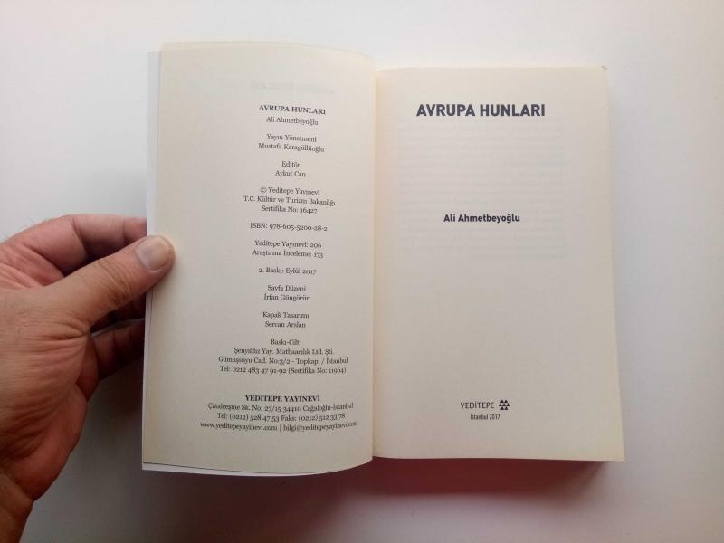 AVRUPA HUNLARI (2. EL), ALİ AHMETBEYOĞLU tarafından kaleme alınmıştır. Eser AYKUT CAN editörlüğünde hazırlanmıştır. Kitap 2017 yılında YEDİTEPE YAYINEVİ YAYINLARI tarafından [İSTANBUL] 978-605-5200-28-2 ISBN kodu ile yayınlanmıştır. Satışta olan kitap, yayınevinin 2. baskısıdır. 264 sayfadır. Sayfa bilgisi 2. HAMUR olarak belirtilmiştir. AVRUPA HUNLARI (2. EL) adlı eser Türkçe dilindedir.