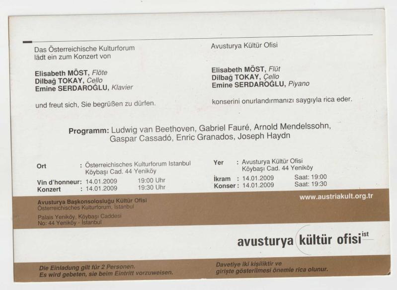 AVUSTURYA KONSOLOSLUĞU KÜLTÜR OFİSİ KLASİK MÜZİK KONSER DAVETİYESİ - 14 OCAK 2009, en son 20 gün önce güncellenmiştir.