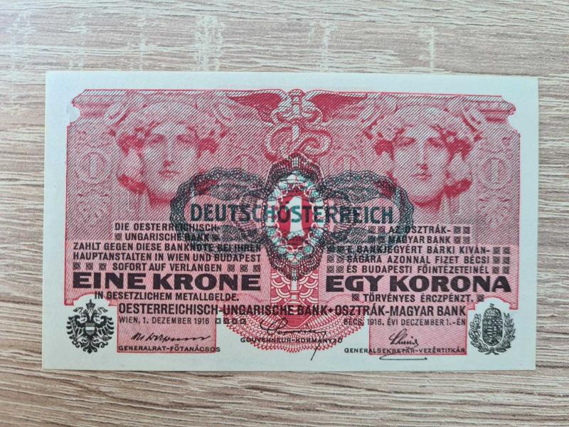 Nominal: 1 Krone İhraç eden: Österreichisch-Ungarische Bank (Avusturya-Macaristan Bankası) Tarih: 1. Dezember 1916 (1 Aralık 1916) – I. Dünya Savaşı dönemi basımı Seri No: Fotoğraflarda görülen numara mevcut Diller: Almanca, Macarca ve arka yüzde çok dilli tasarım Renk: Koyu kırmızı/bordo baskı, ortada kadın figürü ve zengin guilloche desenler AÇIKLAMA Orijinal dönem banknotudur. Replika / modern kopya değildir. Baskı detayları son derece net, ince çizgiler dağılmamış. Sahte fotokopi hissi yok. Kağıt yüzey mat ve dönemine uygun; üzerinde sonradan boya, marker yazı, mühür vb. yok. Ön yüzde “Österreichisch-Ungarische Bank” ibaresi, 1916 tarihli metinler ve savaş dönemi imzaları okunaklı durumda. Arka yüzde seri numarası (“No.” ile başlayan) temiz şekilde duruyor. Kenarlar genel olarak düzgün; köşelerde hafif yaş izleri görülebilir ama ciddi yırtık / bantlı tamir yok. Kat izi belirgin şekilde ortaya kesen derin kırık yok. Genel olarak çok iyi korunmuş bir örnek (koleksiyon literatüründe EF / aUNC civarı diyebileceğimiz temizlikte). TARİHSEL ÖNEM Bu banknot, Avusturya-Macaristan İmparatorluğu’nun son dönemine ve I. Dünya Savaşı yıllarına aittir (1916). İmparatorluk çok uluslu olduğu için arka yüzde “1 Krone” ifadesi farklı dillerde tekrar edilir. 1918’den sonra imparatorluk dağıldığı için bu tip küçük kupürler, imparatorluk tarihinin son parasal izleri olarak görülür. Hem Avusturya-Macaristan, hem I. Dünya Savaşı, hem de eski Avrupa monarşileri temalı koleksiyonlar için temel bir parçadır. KONDISYON / DURUM Yırtık yok Bantlı onarım yok Yazı/karalama yok Renkler canlı Kat izi minimum Bu temizlik seviyesi 1916 tarihli küçük kupür için nadiren bu kadar hoş durumda bulunur.