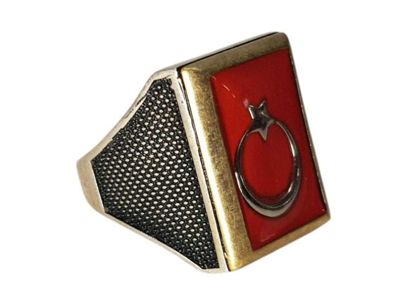 AY YILDIZ BAYRAKLI GÜMÜŞ YÜZÜK başlıklı antika/koleksiyon objesi Türkiye menşe’lidir. 2000 ve sonrası dönemine aittir.