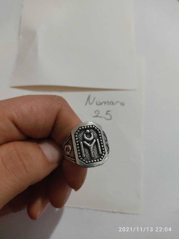 AY YILDIZ IYI TASARIM GÜMÜŞ KAPLAMA SIFIR 25 NUMARA ERKEK YÜZÜK başlıklı antika/koleksiyon objesinin menşei belirtilmemiştir. Objenin ait olduğu dönem bilinmeketedir.