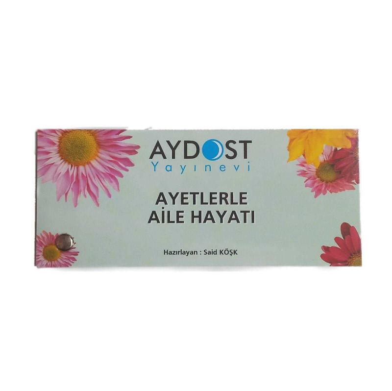 Kitap AYDOST YAYINEVİ tarafından yayınlanmıştır. Satışta olan kitap, yayınevinin 1. baskısıdır. 40 sayfadır. Sayfa bilgisi KUŞE KAĞIT olarak belirtilmiştir. AYETLERLE AİLE HAYATI KARTELA adlı eser Türkçe dilindedir.