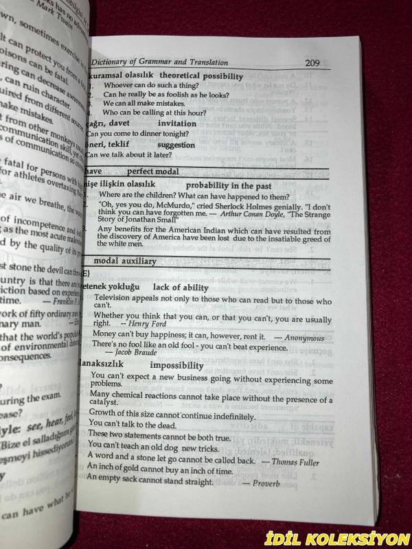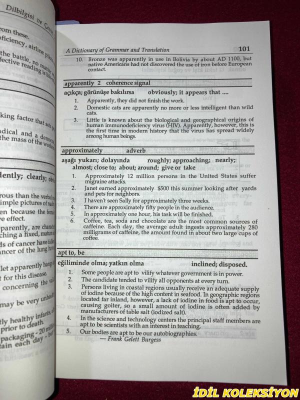 AYHAN SEZER / A DICTIONARY OF GRAMMAR & TRANSLATION / DİLBİLGİSİ VE ÇEVİRİ SÖZLÜĞÜ / HACETTEPE TAŞ KİTAPÇILIK / İNGİLİZCE , TÜRKÇE KİTAP, AYHAN SEZER tarafından kaleme alınmıştır. Kitap 1999 yılında HACETTEPE TAŞ KİTAPÇILIK tarafından [TURKEY] yayınlanmıştır. 806 sayfadır. AYHAN SEZER / A DICTIONARY OF GRAMMAR & TRANSLATION / DİLBİLGİSİ VE ÇEVİRİ SÖZLÜĞÜ / HACETTEPE TAŞ KİTAPÇILIK / İNGİLİZCE , TÜRKÇE KİTAP adlı eser İngilizce dilindedir. Eserin içeriğinde Türkçe dilinde bölümlere de yer verilmektedir.