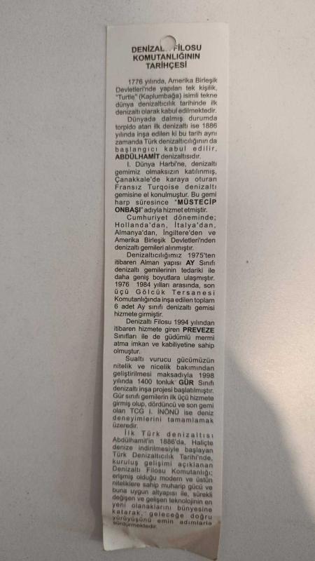 AYRAÇ - DENİZALTI FİLOSU KOMUTANLIĞI başlıklı antika/koleksiyon objesi Türkiye menşe’lidir. 1950-1999 arası dönemine aittir.