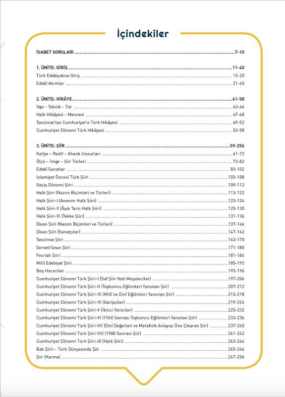 ISBN: 9786052750926 Yazar: Feyzullah Çelikbağ - Mehmet Saylan Ebat: 19,5 X 27,5 Cilt Tipi: Flexi Kapak Sayfa Sayısı: 448 Limit Yayınları’nın önemli bir halkasını teşkil eden Edebiyat Soru Bankası’nı, MEB’in yayımladığı son öğretim programındaki değişiklikler ve kazanımlar ile ÖSYM’nin yaptığı sınavlarda sorduğu soruları dikkate alarak yeniden düzenledik. ÖSYM son yaptığı sınavlarda “metin merkezli” sorulara daha çok yer vermektedir. Biz de bu yönelime bağlı olarak “metin merkezli” soru sayısını arttırdık. Eski öğretim programında yer almayan “küçürek hikâye”, “bilinç akışı”, “iç mono-log”, “sözlükler”, “cenknâme”, “tapşırma”, “dramatik örgü” gibi yeni kavramlarla ve ayrıca programa yeni alınan sanatçılarla ilgili sorulara yer verdik. Türk Dili ve Edebiyatı dersinin “edebiyat” konularının yer aldığı Edebiyat Soru Bankası, okuldaki sınavlarda ve üniversiteye giriş sınavlarında sizin için temel kaynak olacaktır. Kitapta 9, 10, 11 ve 12. sınıfın “edebiyat” kısmında yer alan bütün konularla ilgili sorular yer almaktadır. Kitabımızın size faydalı olacağını temenni ediyoruz. Sınavlara hazırlık aşamasında sizlere büyük katkı sağlayacak olan Edebiyat Soru Bankası’nın hazırlanmasında büyük emek sarf eden yazarlarımız Feyzullah Çelikbağ ve Mehmet Saylan’a teşekkür ederiz. Sınavlara hazırlık yolunda ve hayatınızda başarılar