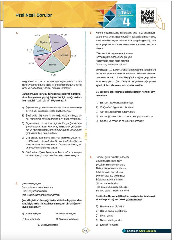AYT Edebiyat Soru Bankası adlı eser, Kitap > Sınav ve Ders Kitapları > Ders Kitapları > Ortaokul, Lise kategorisinde Yeni olarak satıştadır.