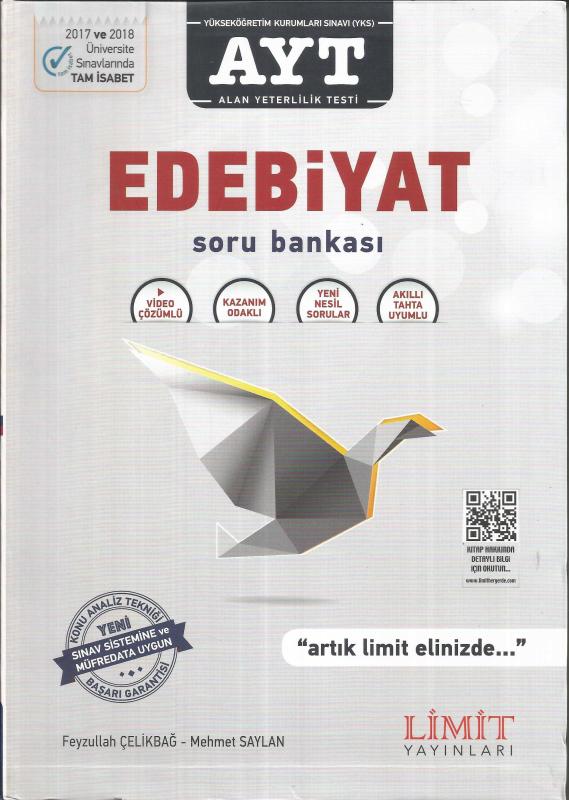 AYT Edebiyat Soru Bankası, Feyzullah Çelikbağ, Mehmet Saylan tarafından kaleme alınmıştır. Kitap 2018 yılında Limit Yayınları tarafından [Ankara] 9786052750926 ISBN kodu ile yayınlanmıştır. 480 sayfadır. AYT Edebiyat Soru Bankası adlı eser Türkçe dilindedir.