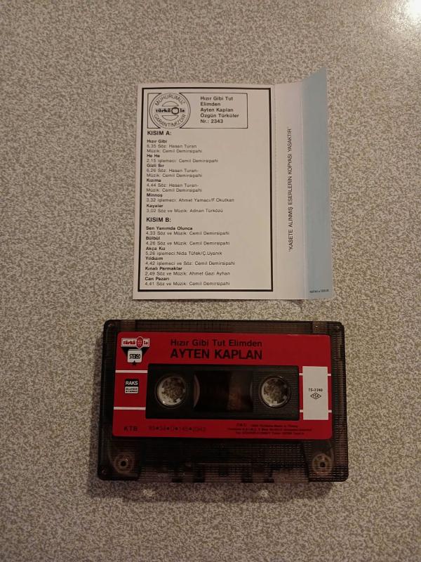 AYTEN KAPLAN HIZIR GİBİ TUT ELİMDEN KAĞIT BASKI başlıklı ürün, Efemera, Müzik, Sinema > Müzik, Plak, Kaset, CD > Müzik Kaseti > Yerli Müzik Kaseti kategorisi altında İkinci El olarak satılmaktadır.